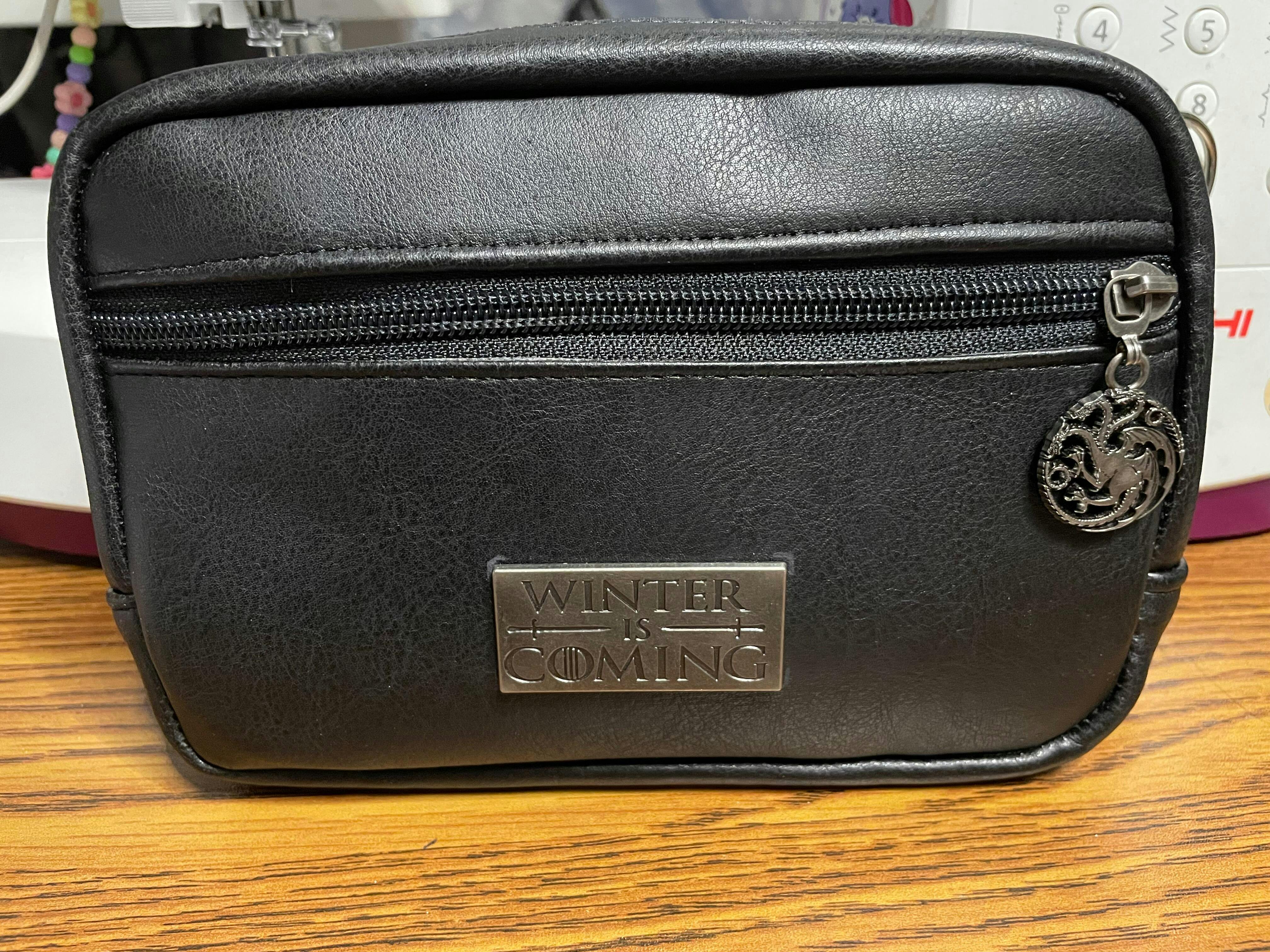 Specs: Finished bag is roughly 7½” wide by 5½”h by 2” deep. (D ring to d ring it is 12½ wide.). This bag has 1 main compartment with 2 interior slip mesh pockets, and one exterior zippered pocket.