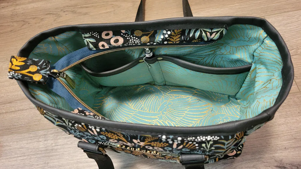 This is an intermediate pattern, in that it uses advanced bag making techniques that require the sewer to have a general familiarity with bag making and uses tools/materials that a beginner may not have on hand. This is not recommended for someone brand new to sewing.