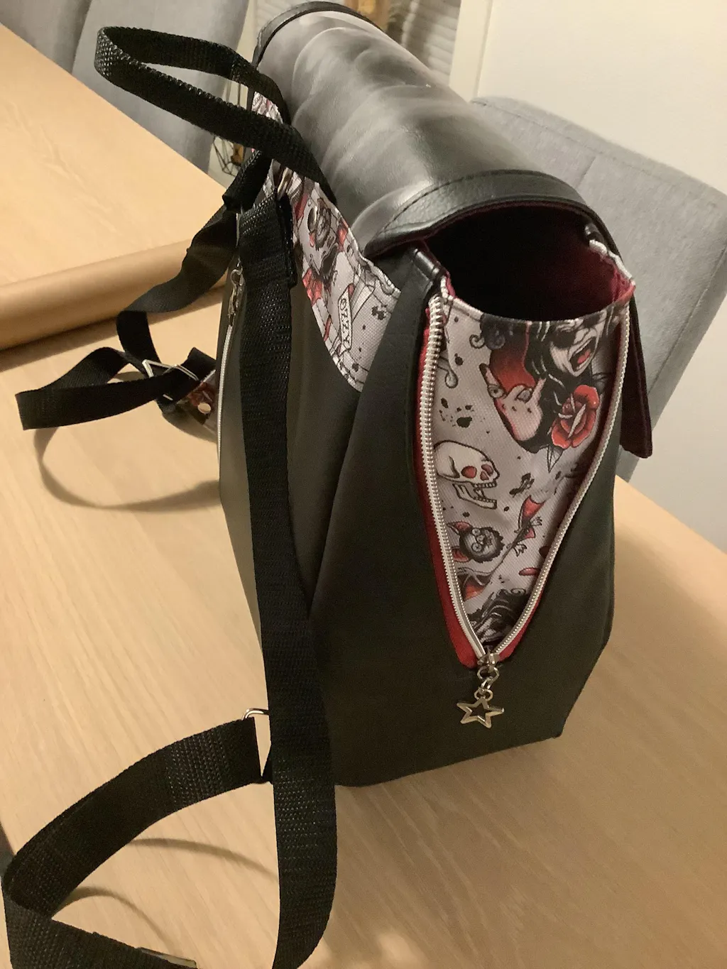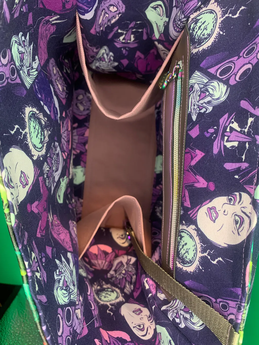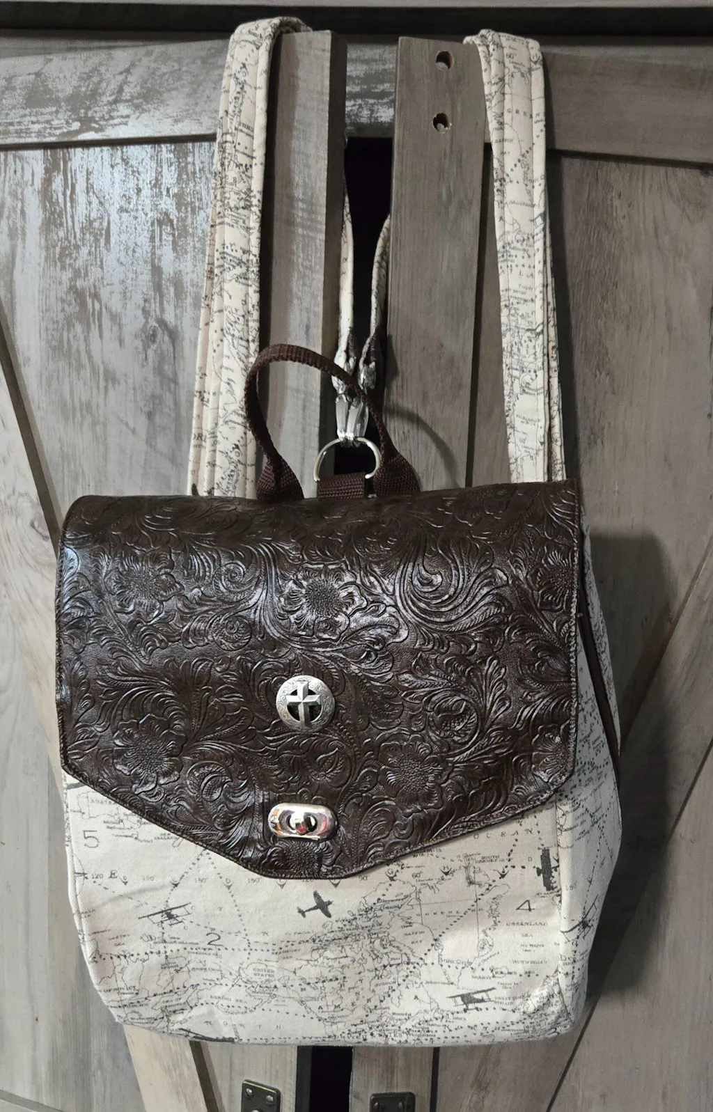 This is an intermediate pattern, in that it uses advanced bag making techniques that require the sewer to have a general familiarity with bag making. It requires accurate cutting/sewing and installing a curved side gusset which can be challenging for new sewers. Specs: approximately 11” wide by 11½” high and 5½” deep. Straps are cut 40” long and fully adjustable with a convenient grab handle along the top. It features 1 exterior vertical zipper pocket along the back for easy access to your cellphone while the bag is being worn, and inside has a slip pocket, zippered pocket, and a bottle sleeve. This bag has a drop in lining.